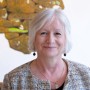 Image of artist printmaker Carolyn Murphy in front of her work