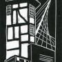 One colour original linocut by Carolyn Murphy. This small black and white linocut captures the contrasting elements of my home city of Manchester. Image size 15cm x 5 cm. Paper size 20cm x 10 cm. Limited edition of 50 on 300g Canaletto off-white paper. Unframed, signed, titled and numbered on the front, backed with board and wrapped in a cellophane bag. This linocut is part of a series of three original mini-linocuts, celebrating Manchester: ‘Manchester Old & New I, II & III’.